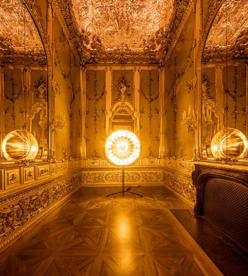 BAROQUE BAROQUE, presented in Vienna, brings together a selection of Olafur Eliasson’s works displayed in the grand, baroque rooms of the Winter Palace of Prince Eugene of Savoy. Eliasson’s multi-faceted sculptures engage with the opulent architecture through light, reflection and space: “Surprising affinities between Eliasson’s works and their temporary settings become evident as the juxtapositions explore the relationships between object and viewer, representation and experience, actual and virtual, giving rise to a concept of the baroque superimposed on itself — the BAROQUE BAROQUE.” said the founders of TBA21.