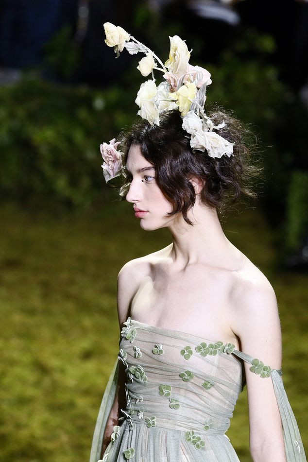 Maria Grazia Chiuri presented her anticipated first couture collection for Dior at the Musée Rodin. The Italian designer took inspiration from the magical and transformed the museum into and enchanted garden featuring a wish tree, adorned with ribbons, lights and metal dragonflies – the work of artist Claude Lalanne – referencing the art that Christian Dior loved so much. The music sounded like it could illustrate Shakespeare’s midsummer night’s dream and VIPs including Kirsten Dunst and Bianca Jagger loved it.