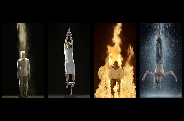 The Renaissance architecture of Palazzo Strozzi proves instrumental in reinforcing his inspiration and the crucial themes explored by Viola: from humanity, spirituality to religious reading. In Viola’s art, these explorations are often expressed through natural elements including water and fire. Bodies and faces, filmed in slow motion remain the conduit for these themes.