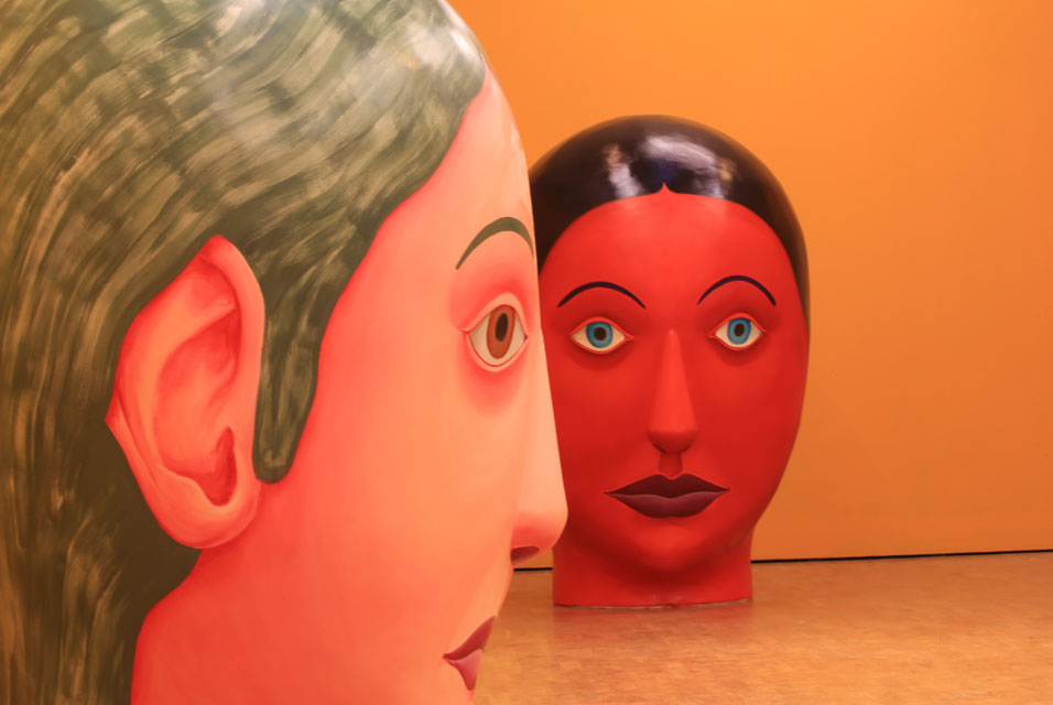 Inspired by a set of carved stone busts that crown the railings of Oxford’s Sheldonian Theatre (first sculpted for the site in 1662–83), known colloquially as ‘the heads of the emperors’, Party’s heads are unique, individually painted sculptures, dominating the physical location at a height of two metres tall (6,5 feet). These five monumental works respond to the Oxford’s male-focused architecture and academic histories.