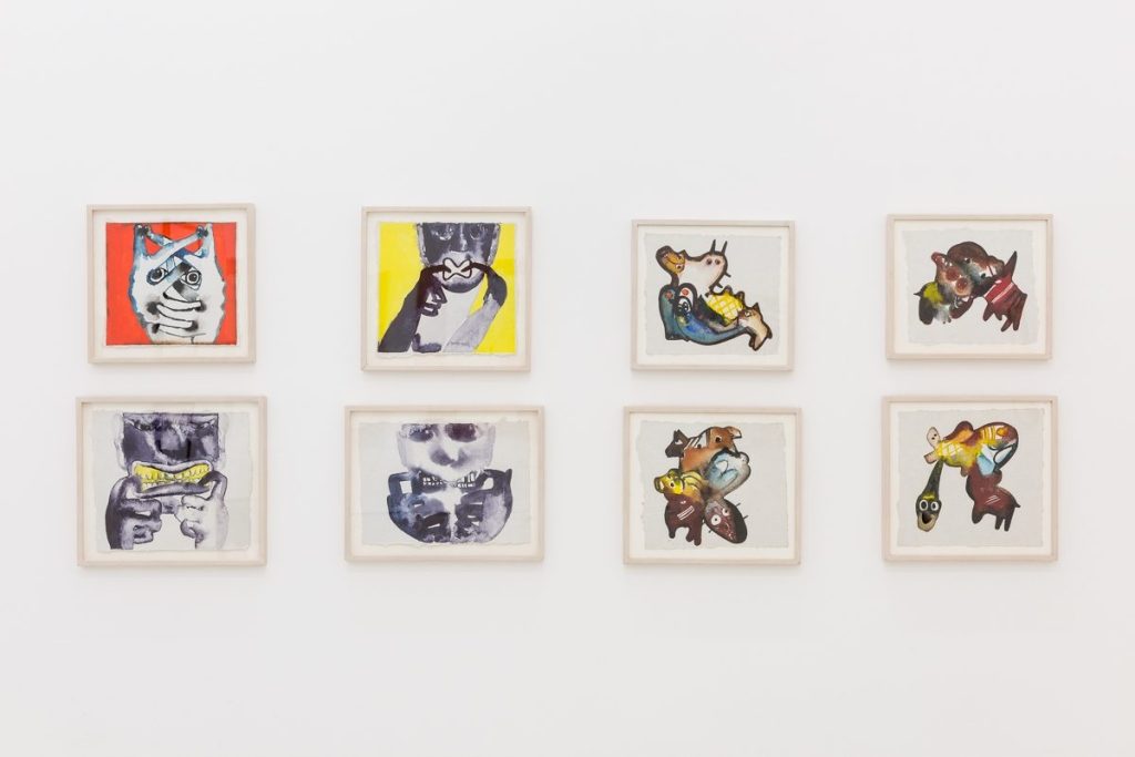 Francesco Clemente is featured in the exhibition through abstract works on paper titled the ‘Evening Ragas’ (1992). In these vibrant watercolours, the artist has illustrated the theme of metamorphosis using two colour combinations. As he explains: ‘I used evening raga instead of day because, to my mind, the overall theme was metamorphosis — activities of the mind connected with dreams and sleep. Nonconscious decisions. The images work on variations of this theme and each group is kept together by a mood, flavour, that you keep in mind.’