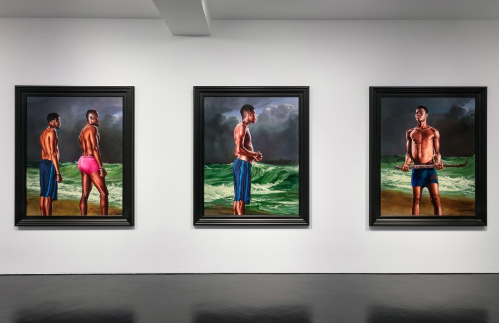 In these new realist compositions, Wiley mixes classical inspiration (Géricault’s Raft of the Medusa seems like an obvious influence but J.M.W. Turner and Hieronymus Bosch are more names) with the poetry of the everyday and contemporary tragic subject matters including migration, isolation and racism. The paintings are set in contemporary America at a time when the Trump administration seems more dangerous than ever. Selecting local young men from the rough areas of remote island nations, Wiley, who is probably most renowned for his portrait of Obama, begins by photographing his subjects in the mirrored pose of a specific historical painting.