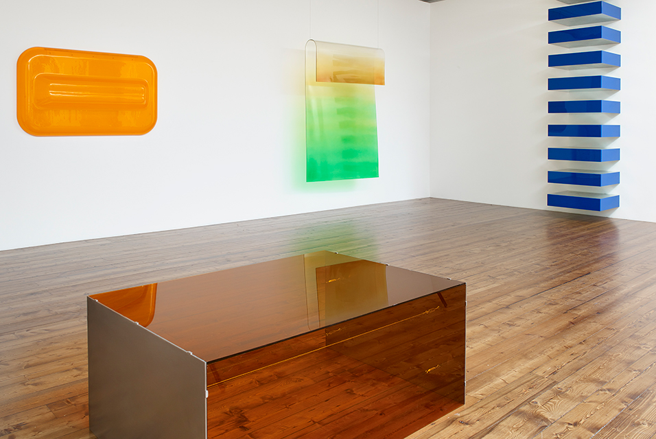 Although primarily known as a Los Angeles based artist, Craig Kauffman had a long history of engagement with the New York scene. In 1967, Kauffman relocated to New York, encouraged by the successes of his recent exhibitions in the city. While there, he began a friendship with Donald Judd, the artist who coined the phrase “specific objects” to describe his own work, a format which operated between painting and sculpture. Like the work of Judd, Kauffman’s three-dimensional plastic paintings occupy this liminal category. Their volume suggests that they are sculpture, but their presence on the wall reinforces their status as paintings. The unity of colour and form, achieved through the use of industrial materials, is another point of similarity between the two artists’ objectives.
