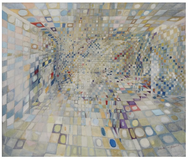 Calvino’s Le città invisibili, published in 1972, imagines a fictional conversation between the Venetian explorer, Marco Polo, and Kublai Khan, the 13th century ruler of the Mongol Empire. In the paintings of Maria Helena Vieira da Silva (b. 1908, Lisbon, Portugal; d. 1992, Paris, France) the physical architecture of the cityscape is splintered. She used ‘floating’ lines to draught architectural structures to highlight an imaginary space. She noted, ‘I want to paint what is not there as though it existed.’ As Polo recalled cities from memory, so Vieira da Silva’s imagined structures and landscapes were constantly shifting, as distant recollections.