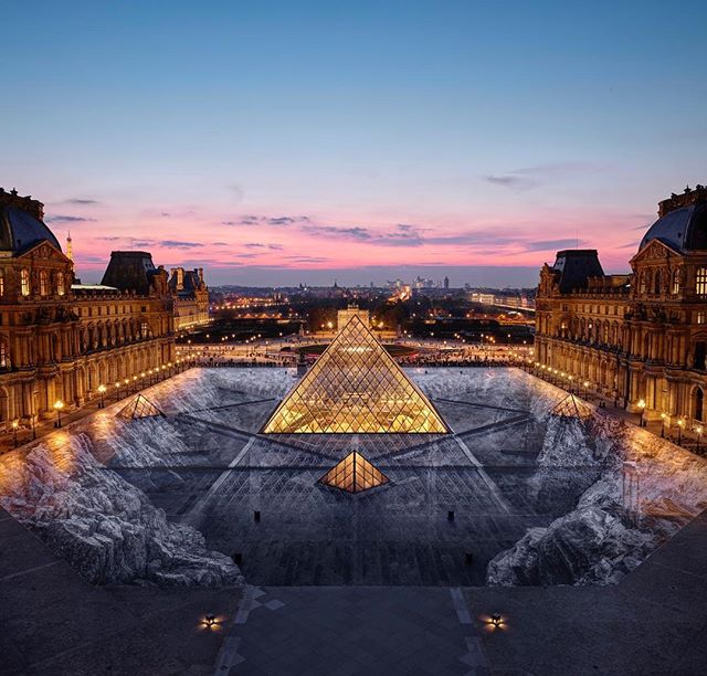 To celebrate the 30th anniversary of the Louvre Museum’s glass pyramid by architect I.M.Pei, French artist JR created a 17,000 sq metre optical illusion surrounding the iconic building.