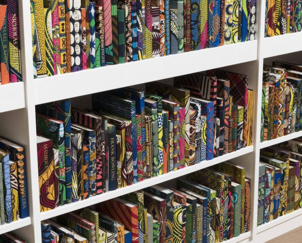 Commissioned by HOUSE 2014, the Brighton Festival and shown in the Old Reference Library at Brighton Museum and Art Gallery, the installation celebrates the diversity of the British population and features 6,328 books bound in ‘Dutch wax print’, a fabric characteristically used by the artist in his work.