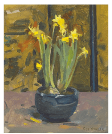 Image: Paul Rafferty, Life Guard – Cannes (2018) and Professor Ken Howard OBE RA RWS NEAC, Christmas Daffodils (2013)
