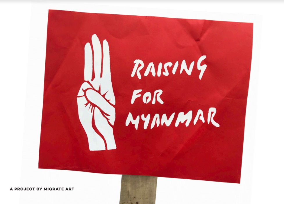 “The idea to focus on this medium in particular relates to the key role posters have played in the Burmese resistance. Raising for Myanmar comes from the genuine urge to support people whose entire lives have been uprooted, and who are facing situations of extreme violence. It has been incredibly uplifting to see such a positive and quick response from all the artists involved” says Simon Butler, Founder of Migrate Art.