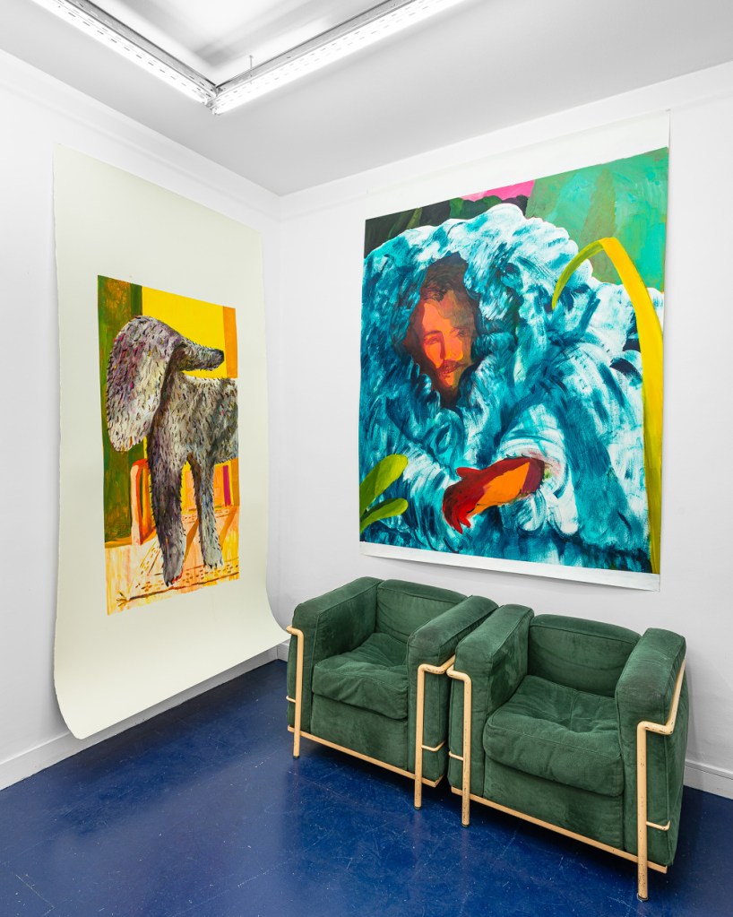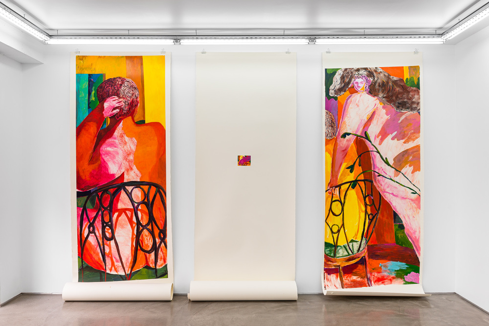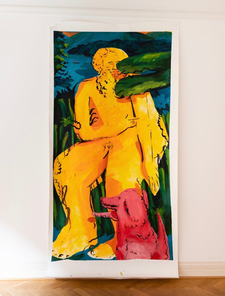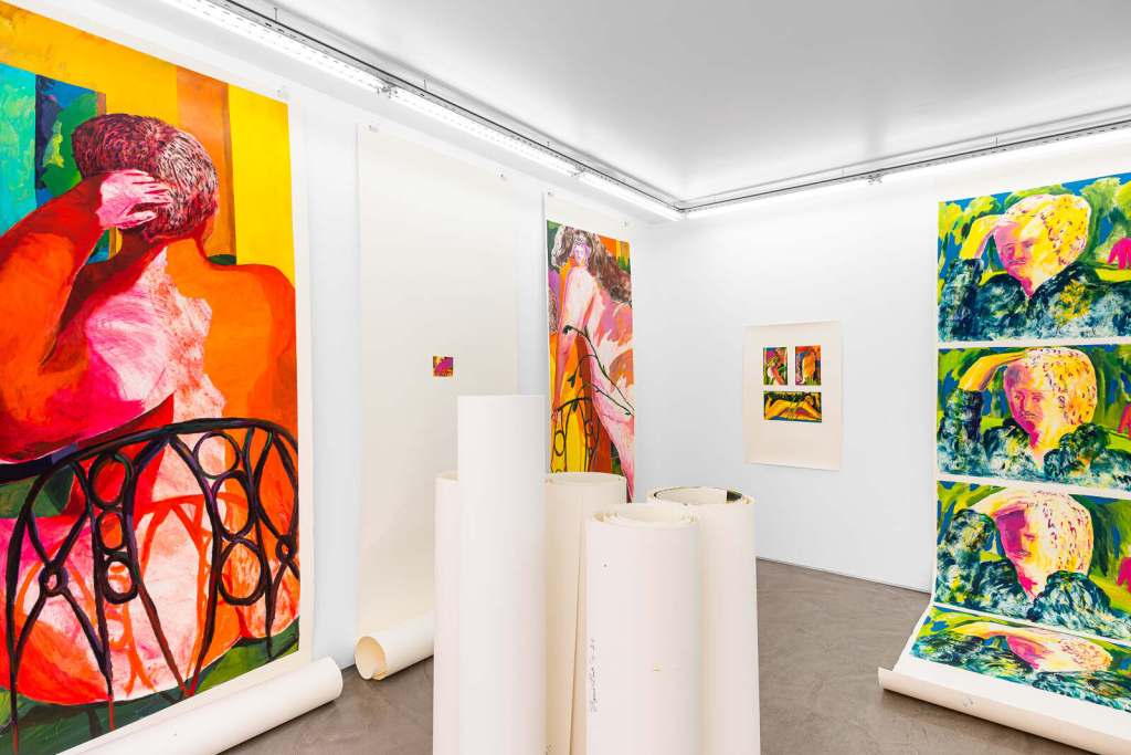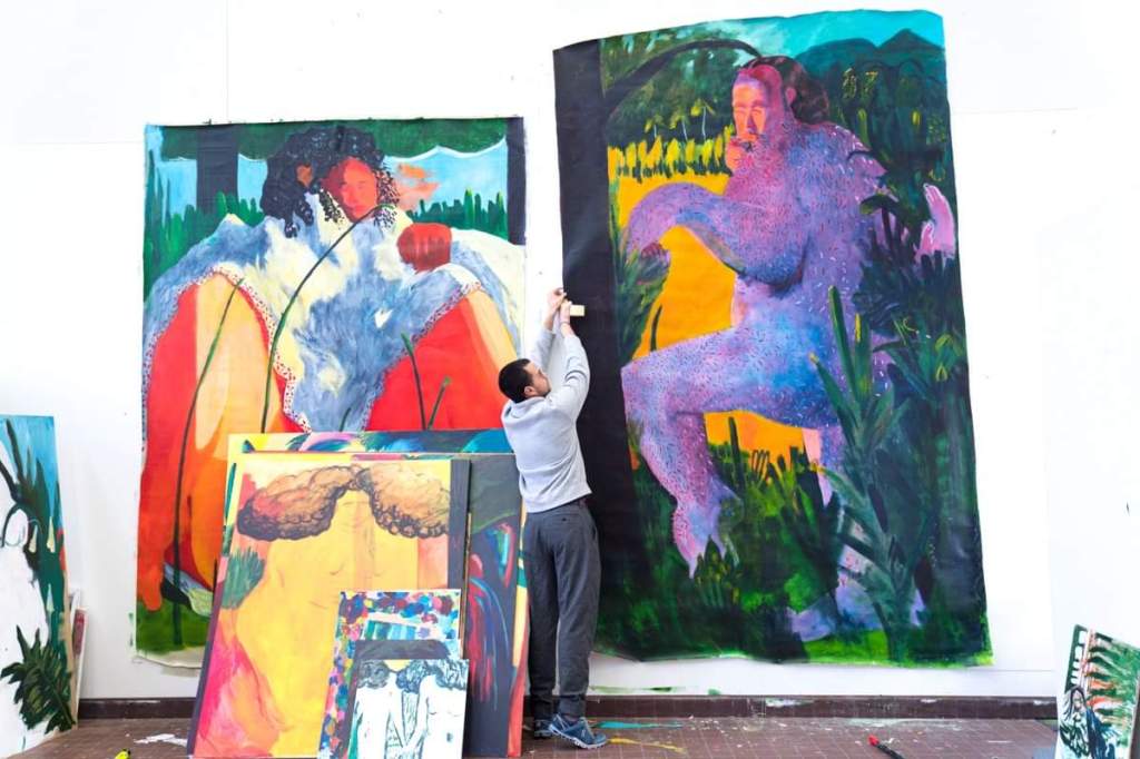 The very talented artist usually paints on large-scale paper exploring the materiality of the canvas, paper qualities and textures. The depicted human forms and their environments recall the work of Henri Matisse and the vivid colours, Raoul Dufy.