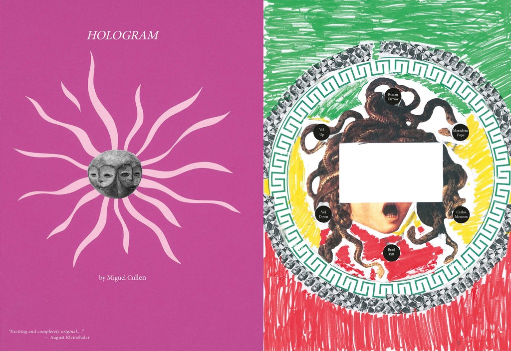 Cullen’s poems in Hologram feature celebrities, mythological characters and historical figures – from Frida Kahlo to Timothée Chalamet. Much of the first part of the book (“Guest List”) deals with themes such as sexuality, class and celebrity, but leavened with playfulness and an exploration of the moving image, collages and colours.