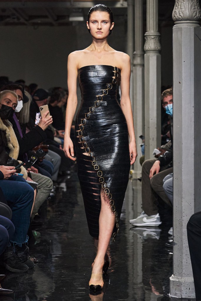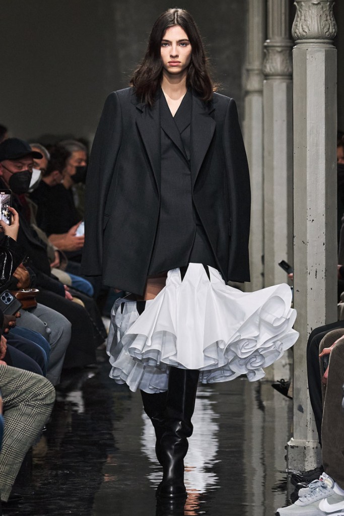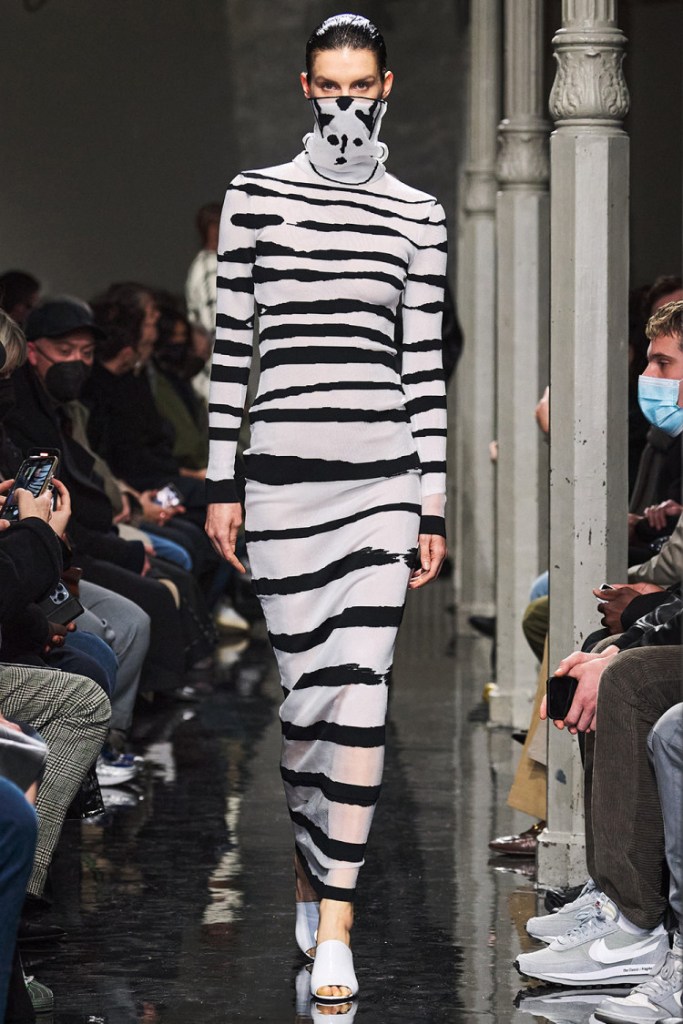 “There’s a rough, pagan beauty about it. Ultimate goddesses,” Mulier said of the dresses. A series of knitted dresses with face coverings executed in close collaboration with the Picasso Foundation (Azzedine Alaïa was a collector and friend of the family) turned models in live ceramics Picasso made in the 1940s in the Madoura studio, in the South of France.