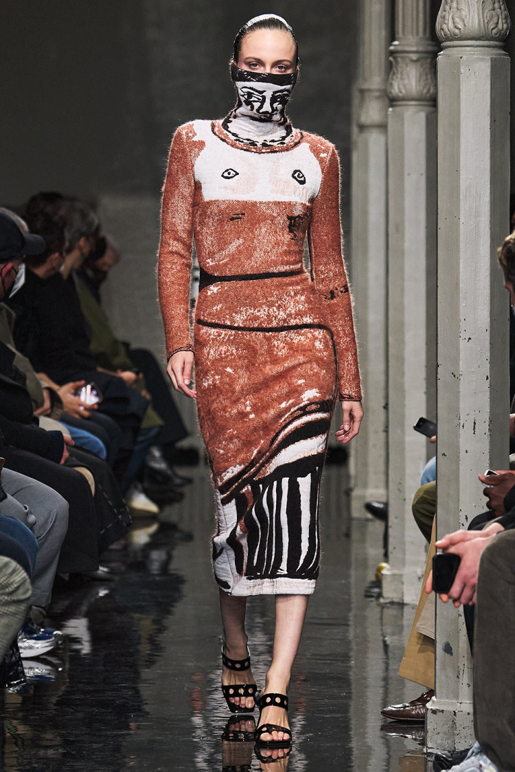 “There’s a rough, pagan beauty about it. Ultimate goddesses,” Mulier said of the dresses. A series of knitted dresses with face coverings executed in close collaboration with the Picasso Foundation (Azzedine Alaïa was a collector and friend of the family) turned models in live ceramics Picasso made in the 1940s in the Madoura studio, in the South of France.