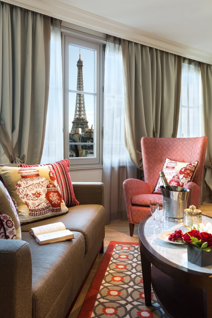 Interestingly, La Clef Tour Eiffel Paris combines the modern aesthetics of the former K Palace hotel, designed in the 1990s by famed Catalan architect Ricardo Bofill, and the Haussmannian style of a 19th century apartment building. Think impressive, curved windows and perfect symmetry. Cherry on the cake, the gorgeous Suite Tour Eiffel offers an incomparable view of its namesake monument.