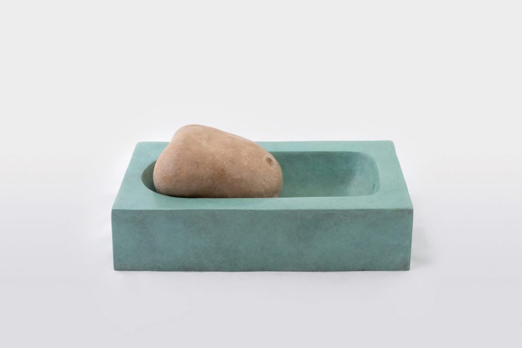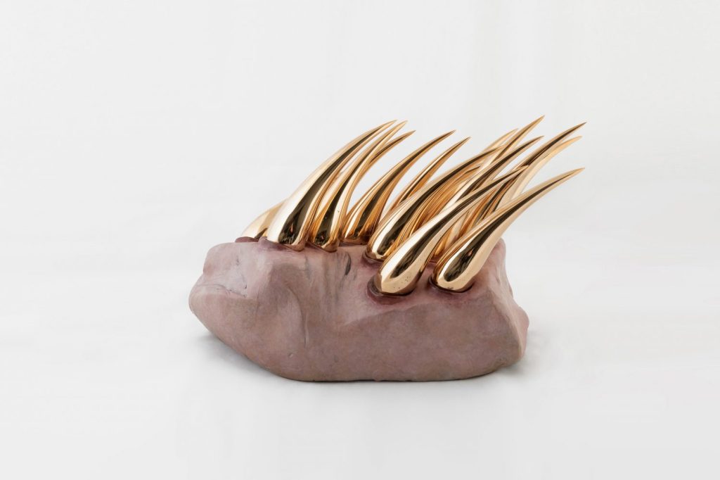 The artist explores installations resonating with ideas of bodily landscapes, surfaces and materiality. The spectacular ‘bijou works’ oscillate between the abstract and the figurative. They look almost like edible-looking sculptures and manage to convey the soft, the wet of flesh in hard, cold, and mechanically produced textures using extreme heat to come to the world. Through his artistic process, molten metal rapidly hardens into a solid form, and the resulting works magically reminisce of human bodies, as well as domestic and planetary environments.