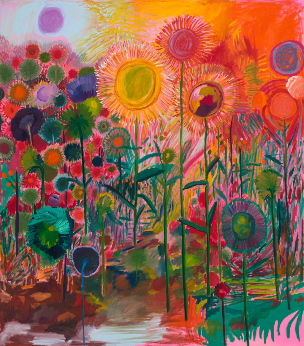 Images: Shara Hughes, Put On A Happy Face , 2021, 172.5 x 152.5 cm, Courtesy: the artist and Galerie Eva Presenhuber © Shara Hughes, Photo: Stan Narten, JSP Art Photography and Vincent van Gogh, Trees , Paris, July 1887, Oil on canvas, 46.5 x 38 cm, Van Gogh Museum, Amsterdam (Vincent van Gogh Foundation)