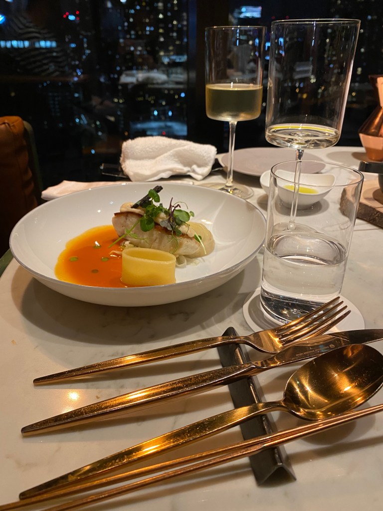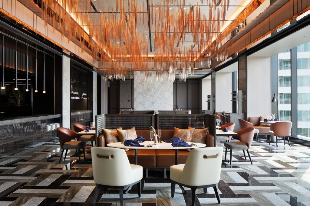 The delicious “Chef’s theatre” lunch has meat and fish, with two main dishes, while dinner features premium ingredients such as caviar, crabs, and Wagyu beef loin. One the recent themes was Romeo and Juliet. Chef’s Theatre offers bistronomy-style French cuisine with the live atmosphere of an open kitchen. At the restaurant, diners can enjoy a gastronomic experience spun along with a story as if they were watching a play, using all five senses. Further gastronomic moments are inspired by artists. The Afternoon Exhibition at “Whisk” is also themed. It has sweets, savouries, and mocktails in harmony with the concept of the “Artist’s Atelier.” Every dish and drink was inspired by the artworks of the greatest artists in history such as Dalí, Vermeer, da Vinci, and Monet. The Girl with a Pearl Earring, was honoured through this themed-culinary moments. And what a stunning ceiling? The light artwork is also designed by Studio Sawada Design who previously collaborated with Louis Vuitton, St Regis, Armani and many other blue-chip projects. Other artworks are disseminated throughout the Hotel. Tracie Cheng, for example, is an artist interested in dimension, fluidity, and versatility, primarily through lines and colour in abstract form. She produced a beautiful mural piece for the hotel. In another room, Shoichi Ikeda created a stunning sculpture reinventing the Tokyo Wave.