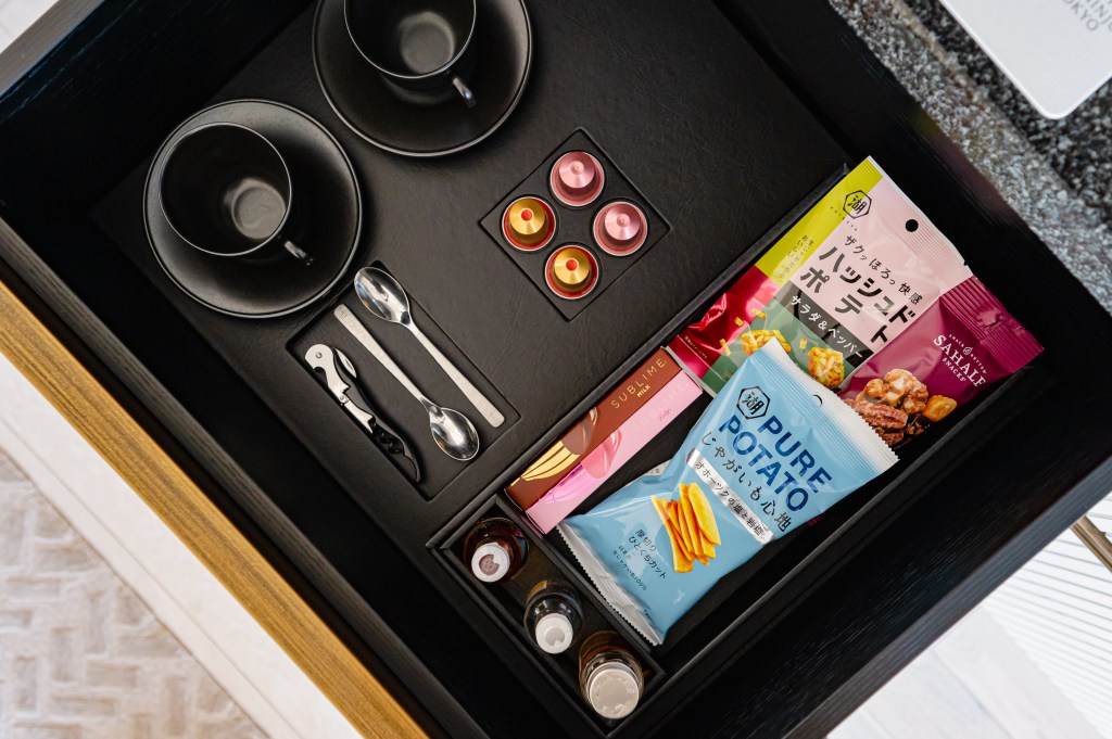 Kimpton Shinjuku is cool, as reflected by the countless fashion shoots that took place in the hotel, most recently for Vogue.com. Local artist SHETA stayed as a guest, and his artwork is available in ground floor concept store which also offers ceramics, books and artefacts. The perfect presents. Artist Daisuke Inomoto who painted the OKAERI piece in the lobby is a frequent guest too and this community inspires more creativity to clients.