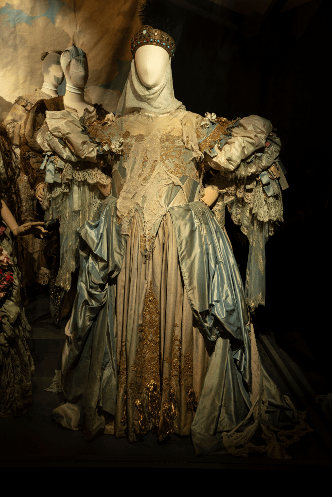 Lacroix’s passion for history, folklore, art, and costume is testament in this intimate presentation of ensembles for Peer Gynt. His childhood love of sketching led him to study art history in Paris, where he enrolled at institutions like the Sorbonne and École du Louvre. While in school, he began working as an illustrator for fashion houses before becoming an assistant to Guy Paulin. After going on to work for Jean Patou, Lacroix started his own eponymous house in the mid-1980s. His collections burst onto the fashion scene with a sense of gaiety, decadence, and fun that would become tantamount to his work. After a decades-long run, the powerhouse designer sold the house in 2009 to realize his early dreams of becoming a museum curator as well as a costumer. Mixing and matching global inspiration with the past, Lacroix has made his mark in fashion history through his opulently theatrical designs.