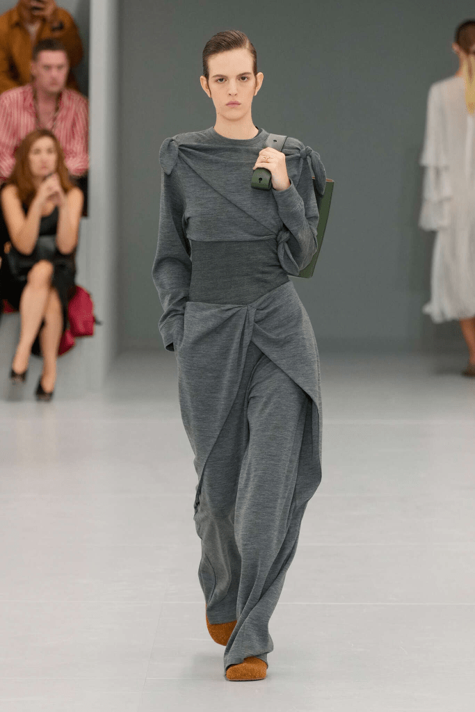 “Reducing fashion to the silhouette, focusing on the outline”, this was the leitmotiv of LOEWE’s Spring / Summer 2024 and latest stunning scollection. The SS24 women’s runway show continues LOEWE’s collaboration with artist Lynda Benglis, who created an installation of monumental bronze sculptures and a series of organic, fluid and vibrant jewellery pieces for the Spanish house.
