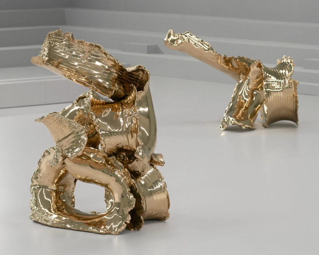 Since the 1960s, Lynda Benglis has been celebrated for her free, ecstatic forms, which are simultaneously playful and visceral, organic and, abstract. Benglis began her career in the midst of the Postminimal movement, pushing the traditions of painting and sculpture into new territories. She initiated several bodies of work in the late 60s and early 70s that set the course for her subsequent practice. Her wax paintings, which began with brushed skin-like layers of pigmented beeswax and dammar resin progressed, in one series, to the use of a blowtorch as a kind of brush, manipulating colors into a marbleized surface that seemingly fought against the constraints of the lozenge-shaped Masonite panels. The impulse to see these forms flow beyond the structure of a traditional support led Benglis to embrace pigmented latex, which she began pouring directly onto the floor. The use of gravity and her body in the latex pours invoked Jackson Pollock’s process, a connection immortalized in the February 27, 1970 edition of Life magazine, which featured Benglis at work.