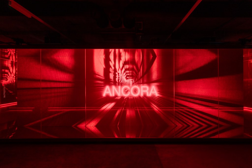 Highlights include ‘Gucci Ancora’ where visitors enter a room directly inspired by Creative Director Sabato De Sarno’s debut collection and runway show for the House. Decorated entirely in the new signature Rosso Ancora shade of red, the room features a central semi-transparent parallelepiped structure containing screens within a mirror-clad inner chamber. Projected onto these semi-transparent walls is a series of personal memories, phrases, and other fragments in both Italian and English, their words appearing and disappearing in mesmerizing motion, accompanied by an evocative video and sound installation featuring the voices of Es Devlin – designer of the show – and Sabato De Sarno. To underline the space’s core aesthetic of installation art merging with poetry and stories, the perimeter walls of ‘Gucci Ancora’– ancora is an Italian word that means ‘also now, again, one more time’ – are lined with semi-transparent cards featuring words that visitors can move around to create their own compositions.