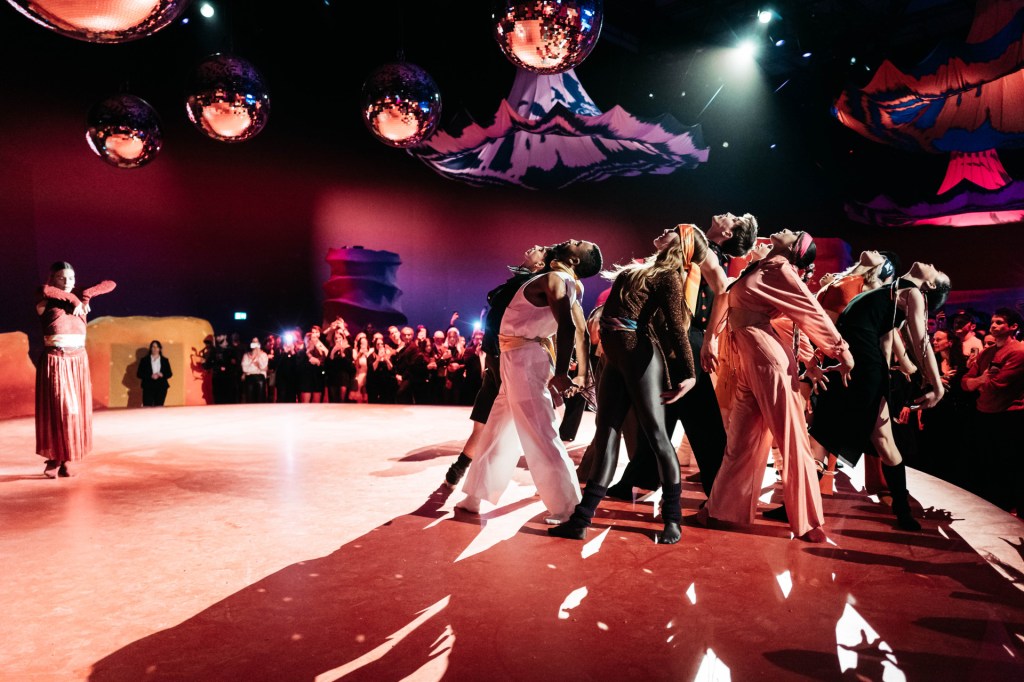 Among these areas were a lounge, bar, “enchanted valley” try-on area, “Love Garden,” and a central dance floor with a moody crimson hue. Live performances by dancer Marcelino Sambé and musician Hope activated the spaces with incredible performances while staff were dressed in vibrant and colourful costumes.