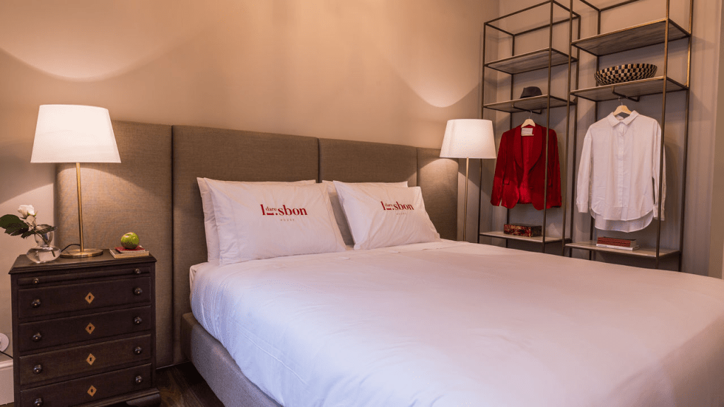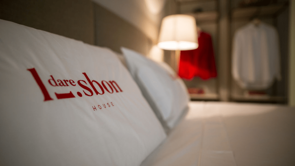 “The brand emphasizes high-quality service and a commitment to delivering an exceptional experience to guests. In short, Dare Lisbon House is a brand that combines the charm of a historic building in Lisbon with a contemporary, cosmopolitan, and welcoming atmosphere, offering travellers an immersive moment in the heart of the city.” she continues. The logo itself is remarkable with bright red on white background in elegant letters. It’s found on the gorgeous notepad displayed on the bed tables.