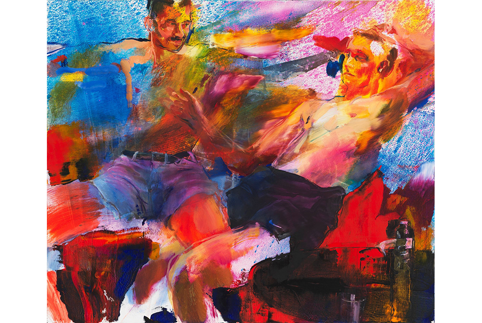Images: Pete and Horatio, 2023. Oil on linen, 127 x 152.4 cm. Private Collection © Doron Langberg. Courtesy the artist and Victoria Miro and Doron Langberg, Bather (2021). Courtesy Victoria Miro.