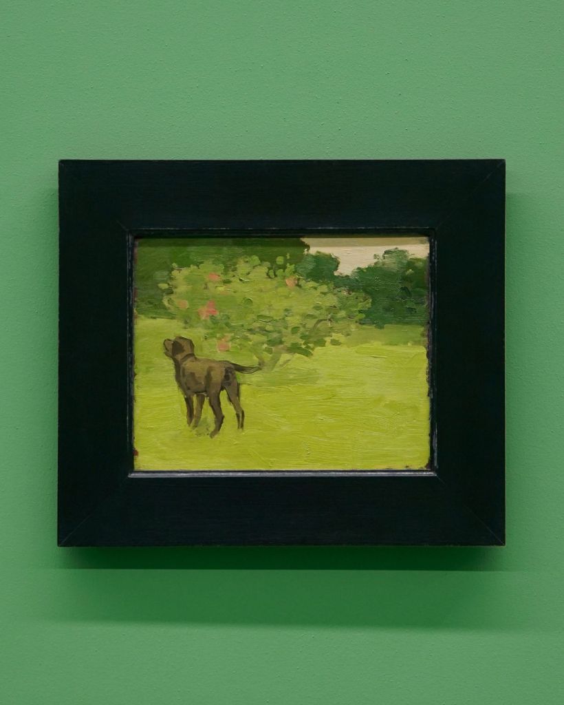 Eighteen paintings, ranging from 1963 to 1990 were displayed in the green space. The stunning artworks on view included ‘Grey Dog in Green Landscape,’ oil on wood panel, from 1978 and ‘Zinnia in Ceramic Jar,’ oil on wood, from 1966, highlighting Jonathan Anderson’s endless fascination with visual arts.