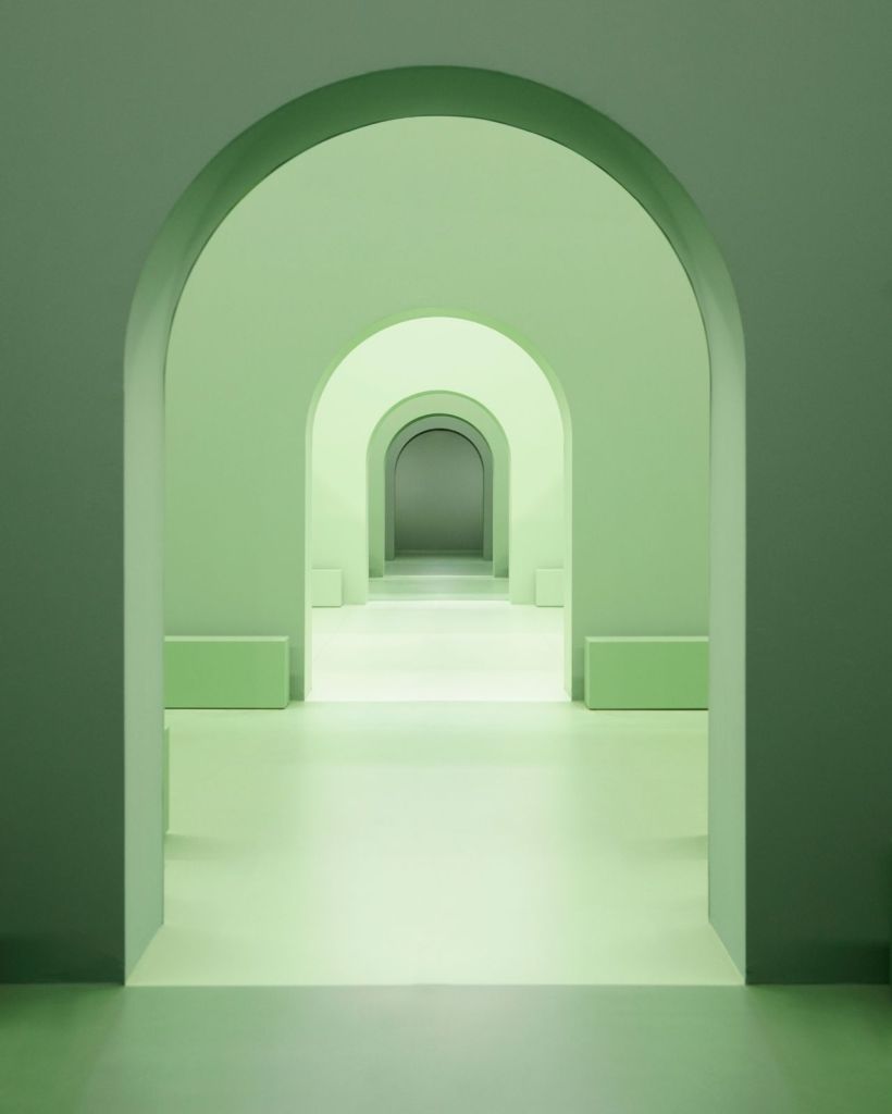 This impressive inclusion of York’s paintings in the latest stunning LOEWE show, in the form of a maze and painted in three different hues of green, represented the largest presentation of York’s paintings outside of America.