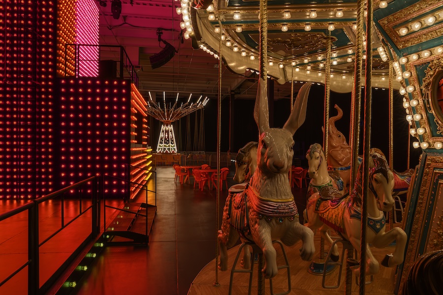 Adding to the immersive experience, The Double Club Los Angeles features two days of musical performances curated by Carsten Höller and Drake. The installation welcomed the public as part of Luna Luna’s admission on March 9 – 10, 2024.