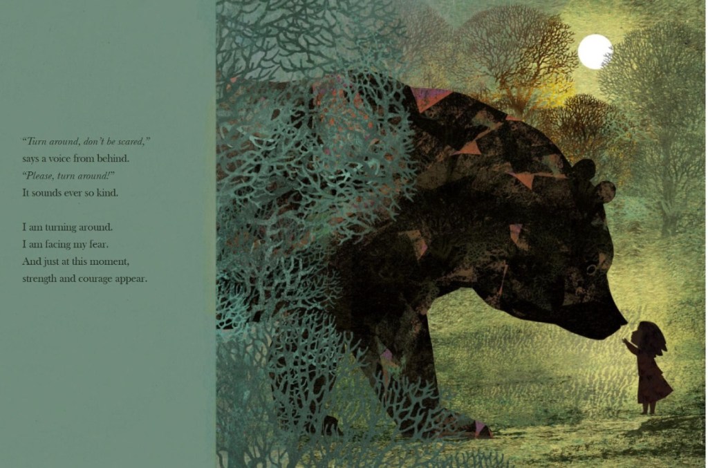 When I feel brave relates the tale of a child who is surprised by a bear while roaming through a forest. In this remarkable title, the author skillfully expresses a girl’s thoughts. Britta Teckentrup examines what it means to be courageous. The main character goes through emotions and her actions lead to greater courage.