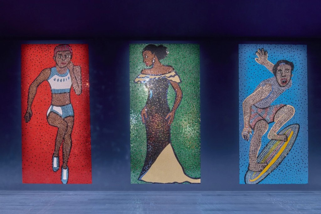 This Haute Couture’s Autumn/Winter 2024–2025 presentation included interpretations of iconic Ringgold pieces, like Woman Freedom Now, a call to arms protest piece made of paper on board. The exterior of the temporary space which hosted the fashion show at the Musée Rodin was wrapped around in the abstract triangular motif from the 1971 sculpture. Banners that referenced the abstract confluence Windows of the Wedding #1 from 1974 was also on display. Ringgold worked with her mother, the renowned Harlem fashion designer Madame Willi Posey, who taught her daughter how to sew, on this series. This show continues Dior’s interest with contemporary art which started with collaborations with Judy Chicago, Joana Vasconcelos, Eva Jospin and many more feminist artists.