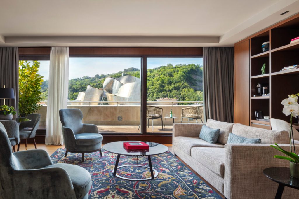 To visit the Guggenheim Museum, there’s no better location than The Artist – Grand Hotel of Art. Spacious and filled with modern design, this wonderful hotel features 145 beautiful guestrooms and suites. It is the best Bilbao has to offer with its excellent panoramic terrace overlooking the architecture of Frank Gehry’s iconic museum. It is said that the architect himself loves to contemplate his masterpiece from The Artist’s rooftop. The Penthouse Suite is the most exclusive of the hotel, where every detail is carefully curated to ensure a perfect stay. It provides a unique experience thanks to the comfort of its two separate rooms and the best private terrace overlooking the gorgeous landscape.