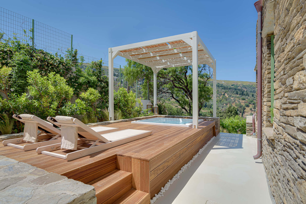 With its impressive views, its high attention to details, its tailored breakfast and warm hospitality, Casa di Fiori is the best in Andros, mixing quiet luxury, chic architecture, and ultra-relaxation. The music played throughout the open-air speakers give a real feel for holidays.