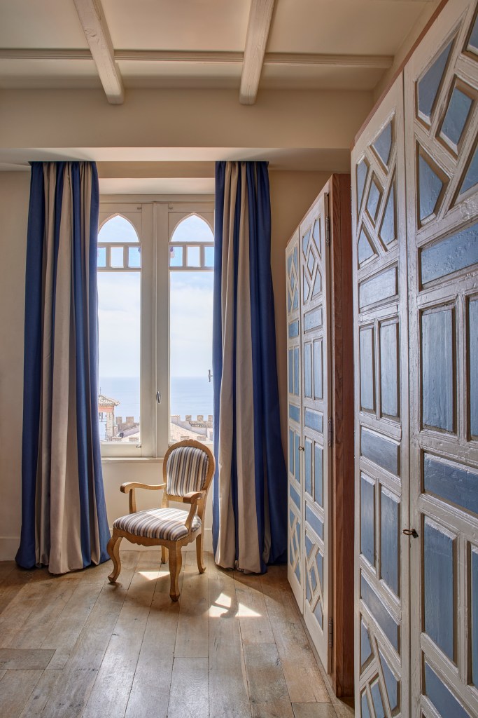 Set on a terrace framed by Gothic-Catalan crenellations and lush Sicilian greenery, the Blue Sky Bar at Palazzo Vecchio is among the most captivating spots, offering breathtaking views of the sea and Mount Etna. From 6 pm. until midnight, the terrace transforms into a vibrant setting, where the timeless elegance of Palazzo Vecchio is heightened in an atmosphere of refined exclusivity. Delicious cocktails include “Pupidda” with Tequila, lavander syrup, lemon juice, strawberry puree, campari bitter, foam, tonic water and “Friscu” with Sicilian gin, lemon juice, foam, rosemary. That blue resonates with the suits worn by staff. Everything is so tasteful at Palazzo Vecchio.
