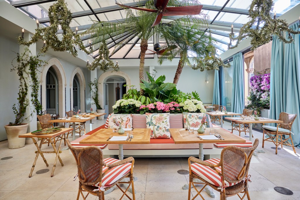 Bathed in the glow of starlight streaming through its vaulted glass ceiling, the orangery at Palazzo Vecchio welcomes guests in a refined, intimate, and tranquil atmosphere. Exotic plants wind their way among rattan furnishings, infusing the space with Mediterranean fragrances and vibrant colours. It is an elegant setting for romantic dinners yet also perfectly suited to host up to 60 guests, for private celebrations.