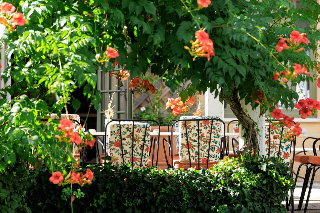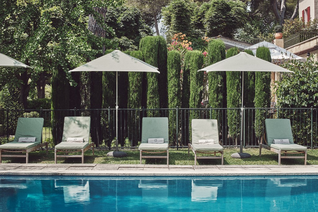 That sense of prestige and haven still lingers today, reimagined with contemporary touches. Decorator and tastemaker Jacques Garcia has infused the entrance, salons, bar and restaurant with rich burgundy and emerald tones, “paying tribute to the spirit of a ‘Maison éclectique provençale,’ the house of a well-read person ready to welcome like minded visitors who would appreciate a library of books, the wooden piano, and the peace and beauty of the gardens.” Designer Marion Mailaender brought a more contemporary energy “her vision was to create a spa that feels like an « Atelier de Jardinier », open to the gardens and the hotel pool, with a serene atmosphere and an adjacent wooden fitness center” while Thibault Picard designed new suites with terraces framed by Provençal stone and wrought-iron tonnelles.