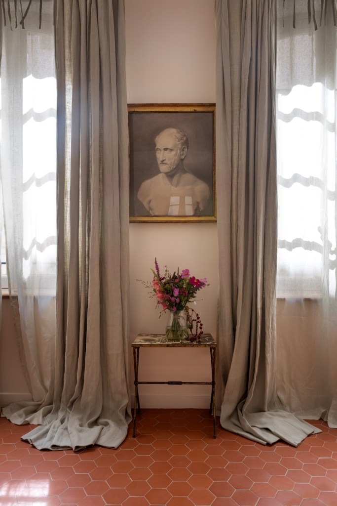 Charlotte Urbain continues: “The idea was to offer an elegant setting true to the Fragonard spirit, highlighting the architectural heritage elements intrinsic to the house, alongside Provençal and contemporary furniture, paintings, and sourced objects. Inspirations range from Fragonard’s travels to the city of Arles’ ancient past, everything blends together seamlessly.”