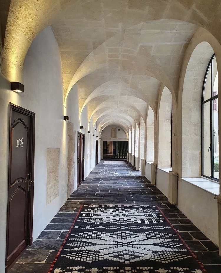 Christian Lacroix’s hand is evident at every turn. He was tasked with preserving the building’s monastic spirit while embedding a contemporary, artistic energy. “The original convent architecture remains visible in the vaulted corridors, the cloister-like garden, and the sense of serenity that permeates the building. Lacroix drew inspiration from Arles itself, its Provençal traditions, Roman heritage, and vibrant art scene, to create interiors that feel both theatrical and deeply rooted in local culture. Every room reflects his love for the city, from antique references to Camargue motifs.” Jérémy continues.