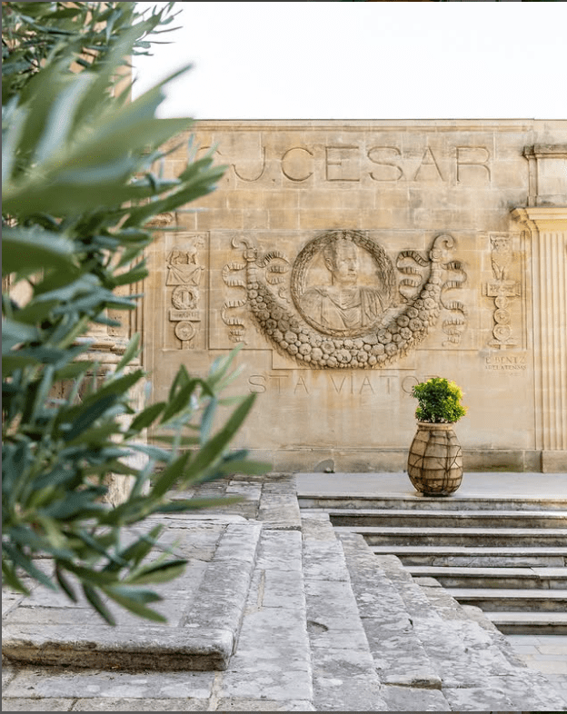 The luxury hotel offers a stay that feels both indulgent and intimately connected to the life of Arles. It is also focused on wellness with its grand spa. From the moment one steps into its majestic staircase and impressive lobby, there is a sense of ultra sophistication. This is a story that is layered with centuries of architecture, artistic vision, and the energy of contemporary luxury. Another impressive mural depiction of Jules Cesar, is encrusted on the adjacent wall of the hotel entrance. What a way to get in!