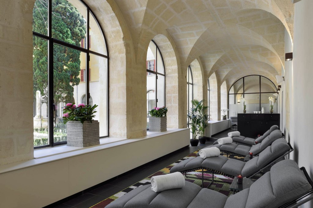 The garden and pool provide a rare city-centre sanctuary. Cloistered within the convent walls, the garden is planted with flowers and greenery that soften the Provençal sun, framing a seasonal, outdoor pool that is reserved for adults. Summer parties are said to be amazing in this outdoor part of the hotel, especially during the photo festival.