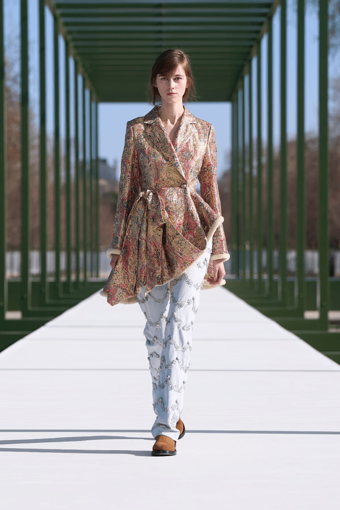 The beauty looks were understated and natural, complementing the ethereal quality of the show. Soft makeup and effortlessly styled hair reinforced the sense of ease and harmony with the environment, making the experience feel less like a traditional runway and more like a stroll through an enchanted garden.