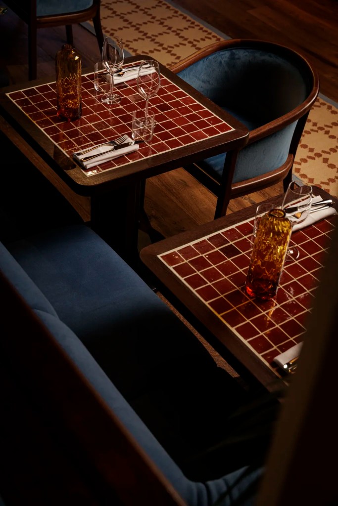 The restaurant’s aesthetic draws directly from the founders’ Athenian and French heritages. Framed recipes from Mouratoglou’s grandmother’s handwritten cookbook line the kitchen walls, while bespoke lighting and quarry-tile floors subtly combine British craftsmanship with Greek hospitality.